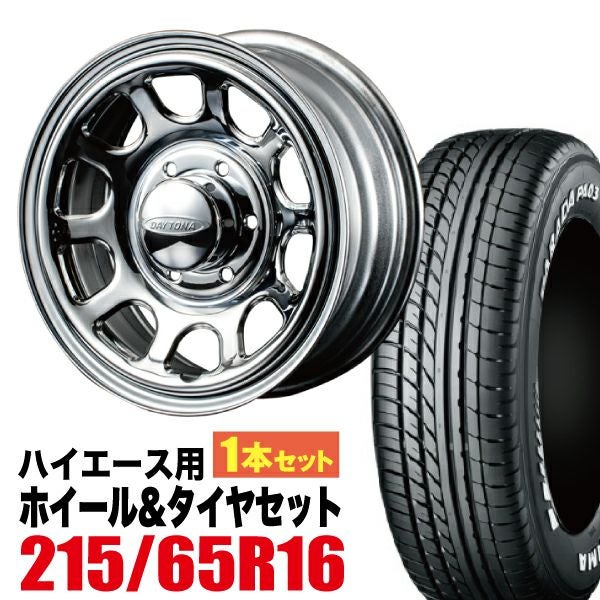 Roadster×YOKOHAMA|200系ハイエース用タイヤホイール Daytona-RS NEO 16インチ×6.5J+38 6穴 クローム+YOKOHAMA PARADA PA03 215/65R16C 109/107S ホワイトレター