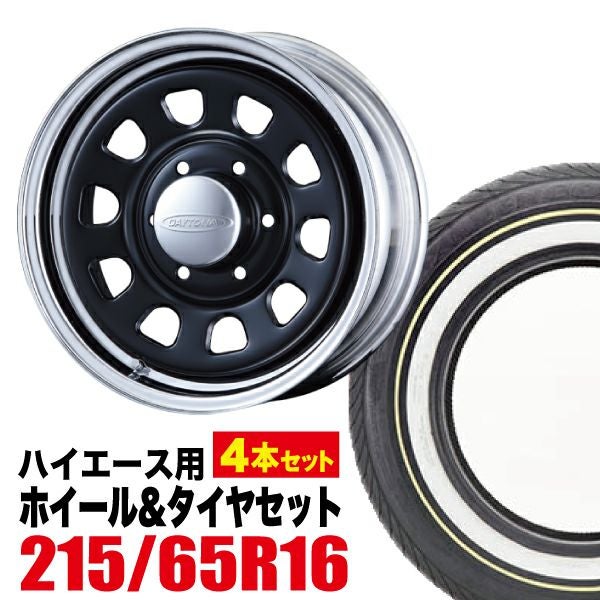 Roadster|ハイエース用タイヤホイールセット Daytona-RS 16インチ×6.5J+38 6穴 クロームリム ブラックディスク+ALLENCOUNTER CLASSIC OVAL 215/65R16C 109/107T ホワイト/イエローリボン 4本セット