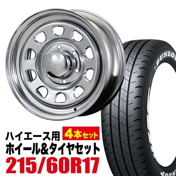 Roadster|ハイエース用タイヤホイールセット Daytona-RS 17インチ×6.5J+38 6穴 クローム+DUNLOP(ダンロップ) W01 215/60R17C 109/107N ホワイトレター 4本セット
