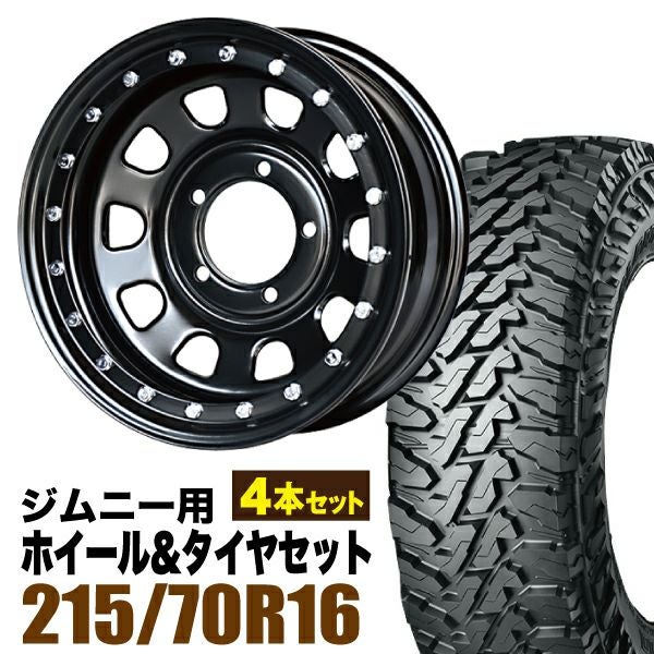Roadster|ジムニー用タイヤホイールセット 【4本セット】鉄漢 16インチ 6.0J -20 ブラック ビードロック風 + YOKOHAMA GEOLANDAR M/T (G003) LT215/70R16 100/97Q