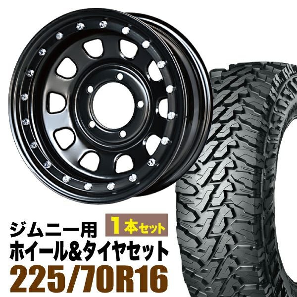 Roadster|ジムニー用タイヤホイールセット 【1本セット】鉄漢 16インチ 6.0J -20 ブラック ビードロック風 + YOKOHAMA GEOLANDAR M/T (G003) 225/70R16 103S