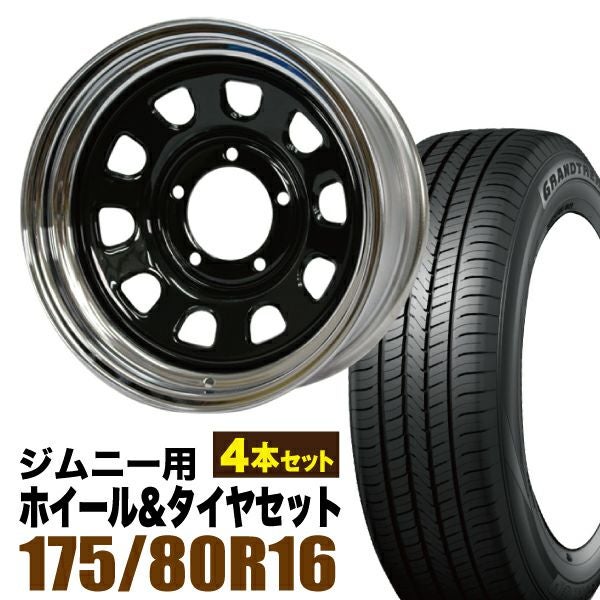 Roadster|ジムニー用タイヤホイールセット 【4本セット】鉄心 16インチ 6.0J -20 ブラック&クローム + DUNLOP GRANDTREK PT5 175/80R16 91S