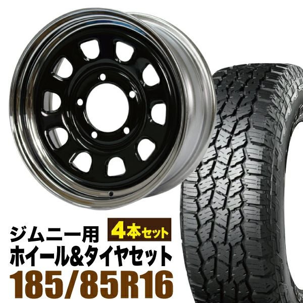 Roadster|ジムニー用タイヤホイールセット 【4本セット】鉄心 16インチ 6.0J +20 ブラック&クローム + YOKOHAMA GEOLANDAR A/T4 (G018) 185/85R16 105/103N LT ホワイトレター