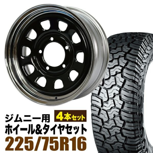 Roadster|ジムニー用タイヤホイールセット 【4本セット】鉄心 16インチ 6.0J +20 ブラック&クローム + YOKOHAMA GEOLANDAR X-AT (G016) LT225/75R16 103/100Q アウトラインホワイトレター