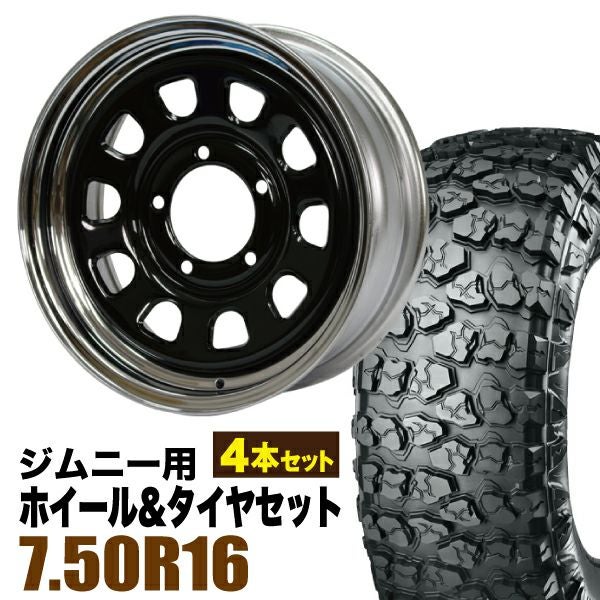 Roadster|ジムニー用タイヤホイールセット 【4本セット】鉄心 16インチ 6.0J +20 ブラック&クローム + YOKOHAMA GEOLANDAR X-MT (G005) 7.50R16C 116/114N