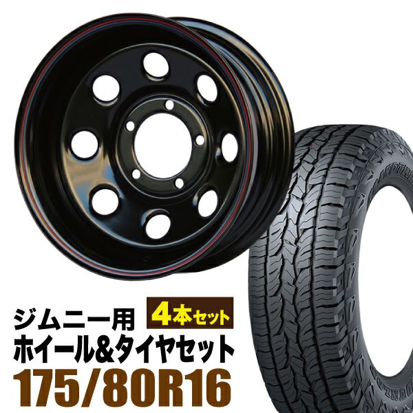Roadster|ジムニー用タイヤホイールセット まつど家 三男 鉄八 6.0J -40 ブラック + DUNLOP GRANDTREK AT5 175/80R16 91S 4本セット