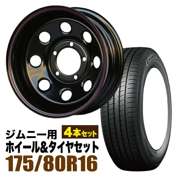 Roadster|ジムニー用タイヤホイールセット まつど家 三男 鉄八 6.0J -40 ブラック + DUNLOP GRANDTREK PT5 175/80R16 91S 4本セット