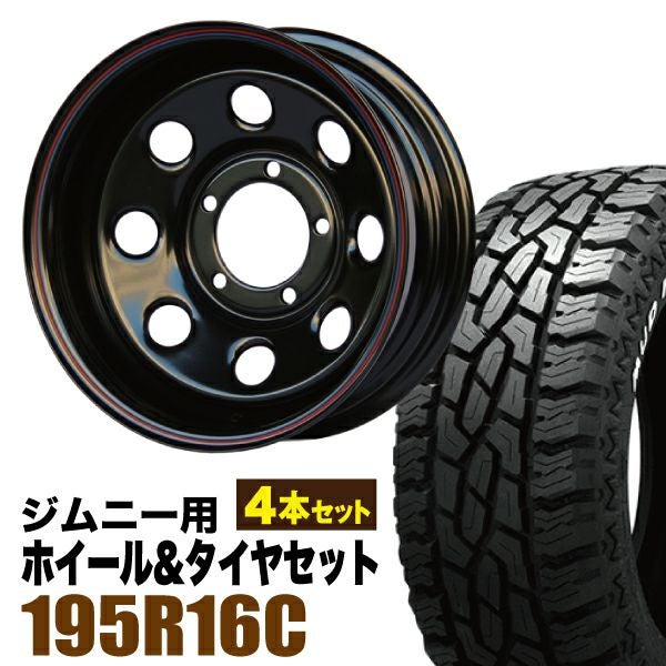 Roadster|ジムニー用タイヤホイールセット まつど家 三男 鉄八 6.0J -40 ブラック+GRIPMAX Mud Rage R/T MAX(グリップマックス マッドレイジアールティマックス) 195R16C 104/102Q ホワイトレター 4本セット