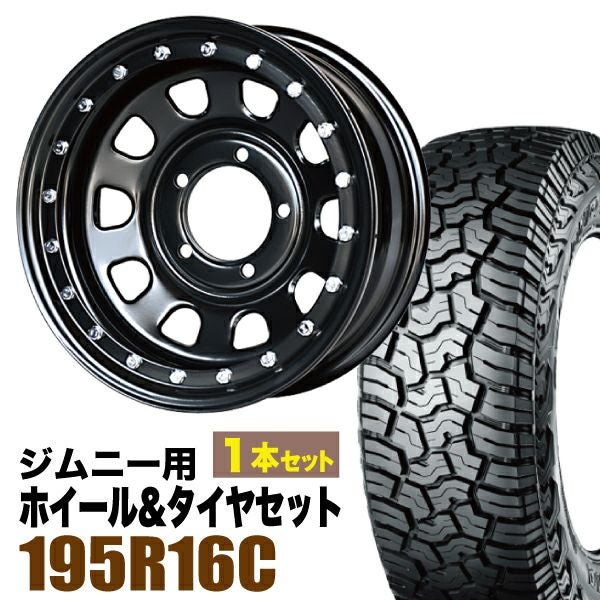 Roadster|ジムニー用タイヤホイールセット まつど家 長男 鉄漢 6.0J -20 ブラック + YOKOHAMA GEOLANDAR X-AT G016 195R16C 104/102Q アウトラインホワイトレター 1本セット