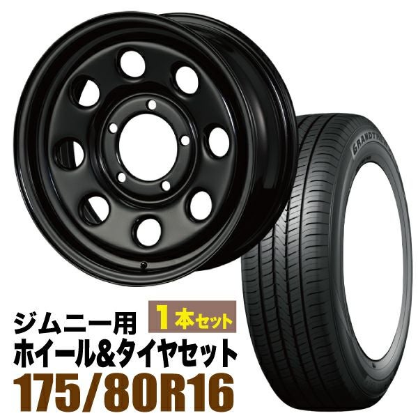 Roadster|ジムニー用タイヤホイールセット まつど家 三男 鉄八 6.0J +20 ブラック + DUNLOP GRANDTREK PT5 175/80R16 91S 1本セット