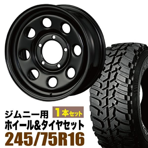 Roadster×DUNLOP|ジムニー用タイヤホイール まつど家 三男 鉄八 6.0J +20 ブラック + DUNLOP GRANDTREK MT2 245/75R16 ホワイトレター 1本セット
