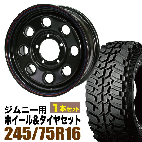 Roadster×DUNLOP|ジムニー用タイヤホイール まつど家 三男 鉄八 6.0J +20 ブラック + DUNLOP GRANDTREK MT2 245/75R16 ホワイトレター 1本セット