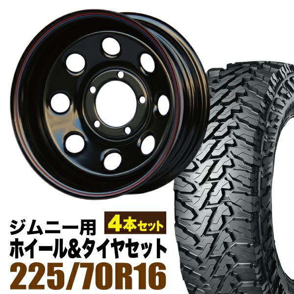 Roadster|ジムニー用タイヤホイールセット 【4本セット】鉄八 16インチ 6.0J -40 ブラック + YOKOHAMA GEOLANDAR M/T (G003) 225/70R16 103S