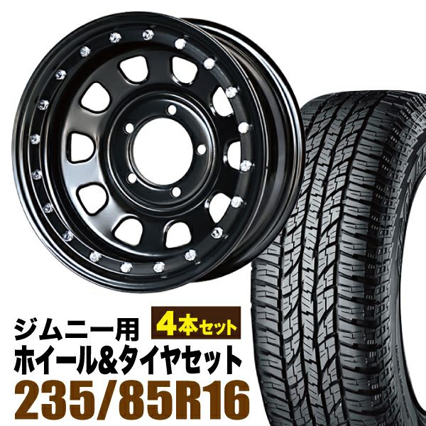 Roadster|ジムニー用タイヤホイールセット 【4本セット】鉄漢 16インチ 6.0J -20 ブラック ビードロック風 + YOKOHAMA GEOLANDAR A/T (G015) LT235/85R16 120/116R アウトラインホワイトレター