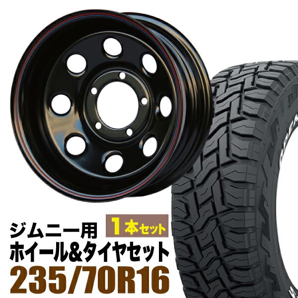 Roadster|ジムニー用タイヤホイールセット まつど家 三男 鉄八 6.0J -40 ブラック + TOYO OPEN COUNTRY R/T 235/70R16 106Q ホワイトレター 1本セット