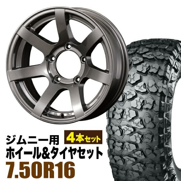 ORIGIN Labo Jimny|ジムニー用タイヤホイールセット 【4本セット】MUD-S7 16インチ 5.5J -20 ガンメタ + YOKOHAMA GEOLANDAR X-MT (G005) 7.50R16C 116/114N