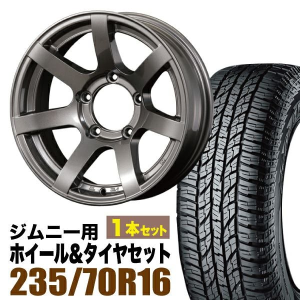 ORIGIN Labo Jimny|ジムニー用タイヤホイールセット 【1本セット】MUD-S7 16インチ 5.5J -20 ガンメタ + YOKOHAMA GEOLANDAR A/T (G015) P235/70R16 104T アウトラインホワイトレター