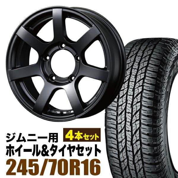 ORIGIN Labo Jimny|ジムニー用タイヤホイールセット 【4本セット】MUD-S7 16インチ 5.5J +20 マットブラック + YOKOHAMA GEOLANDAR A/T (G015) P245/70R16 106T アウトラインホワイトレター