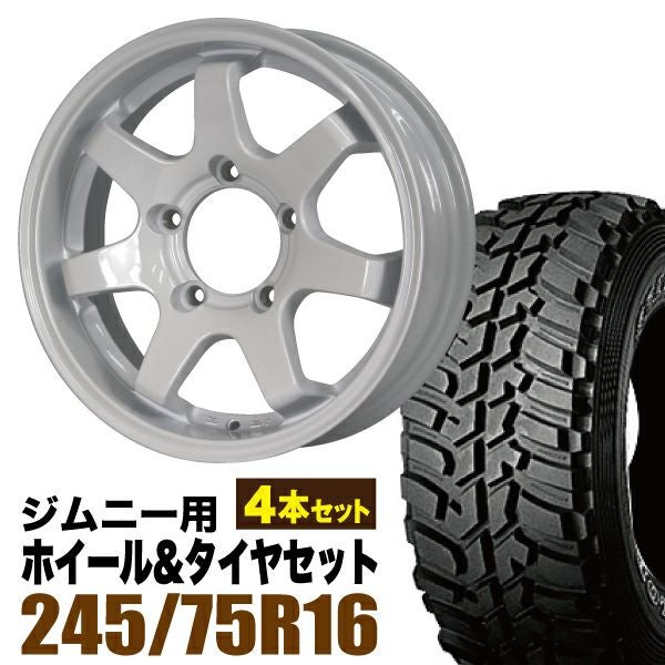 ORIGIN Labo×DUNLOP|ジムニー用タイヤホイール MUD-SR7 Jimny 5.5J+20シャインホワイト DUNLOP GRANDTREK MT2 245/75R16 ホワイトレター 4本セット