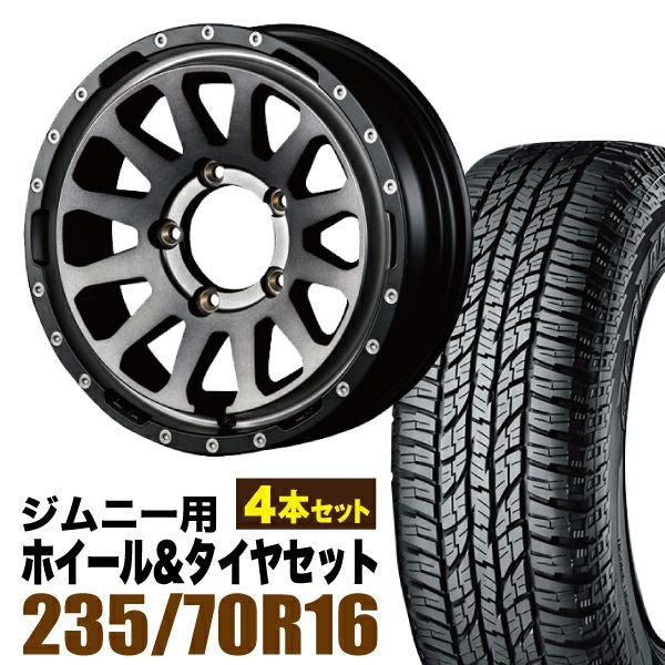 ORIGIN Labo Jimny|ジムニー用タイヤホイールセット 【4本セット】MUD-ZEUS 16インチ 5.5J +20 ライトブラックコート + YOKOHAMA GEOLANDAR A/T (G015) P235/70R16 104T アウトラインホワイトレター