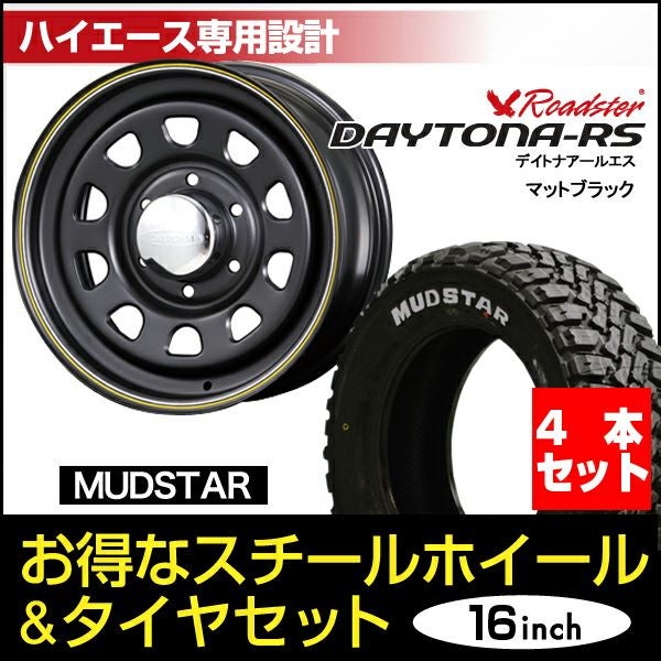 他の画像を見る Roadster|200系ハイエース/レジアスエース1~6型用 Daytona-RS 16インチ×6.5J+38 6穴 ブラック+MUDSTAR RADIAL M/T 215/65R16C 109/107R ホワイトレター 4本セット ハイエース Daytona RS 16インチ +38 4本セット マッドスター 代引不可 販売価格 ¥ 121,000 税込 詳細を見る お気に入りに登録する