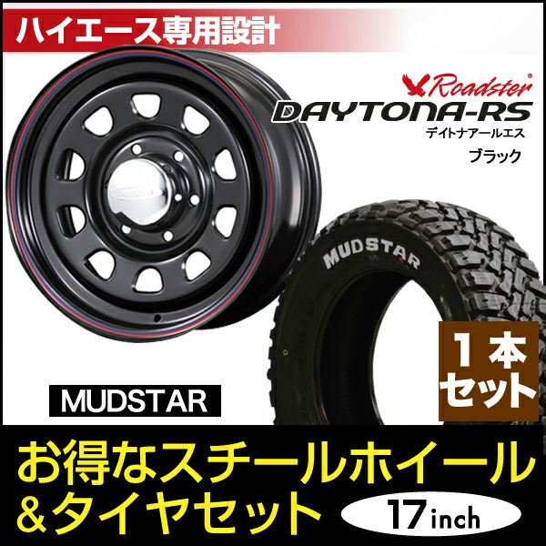 他の画像を見る Roadster|200系ハイエース/レジアスエース1~6型用 Daytona-RS 17インチ×6.5J+38 6穴 ブラック+MUDSTAR RADIAL M/T 215/60R17C 109/107R ホワイトレター ハイエース Daytona RS 17インチ +38 1本セット マッドスター 代引不可 販売価格 ¥ 33,550 税込 詳細を見る お気に入りに登録する