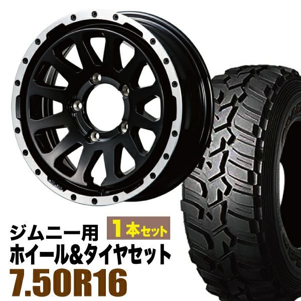 ORIGIN Labo Jimny|ジムニー用タイヤホイールセット MUD-ZEUS Jimny 5.5J+20 グロスブラック+DUNLOP GRANDTREK MT2 7.50R16 6PR 1本セット