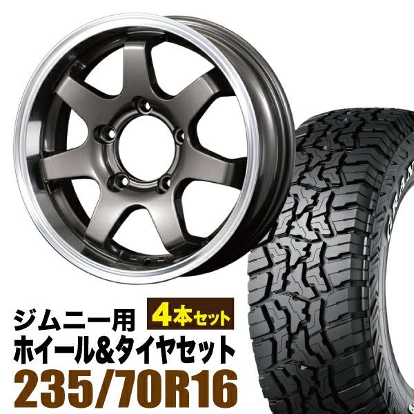 ORIGIN Labo×DUNLOP|ジムニー用タイヤホイール MUD-SR7 Jimny 5.5J+20 ガンメタリック+グラントレック R/T01 LT 235/70R16 104/101Q ホワイトレター 4本セット