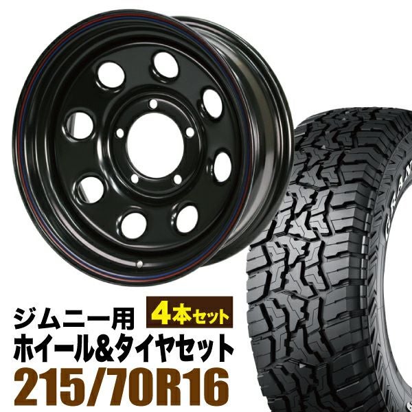 Roadster×DUNLOP|ジムニー用タイヤホイール まつど家 三男 鉄八 6.0J -20 ブラック+グラントレック R/T01 LT 215/70R16 100/97Q ホワイトレター 4本セット