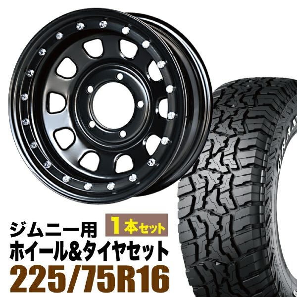 Roadster×DUNLOP|ジムニー用タイヤホイール まつど家 長男 鉄漢 6.0J -20 ブラック+グラントレック R/T01 LT 225/75R16 110/107Q ホワイトレター 1本セット