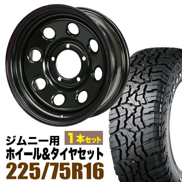 Roadster×DUNLOP|ジムニー用タイヤホイール まつど家 三男 鉄八 6.0J -20 ブラック+グラントレック R/T01 LT 225/75R16 110/107Q ホワイトレター 1本セット