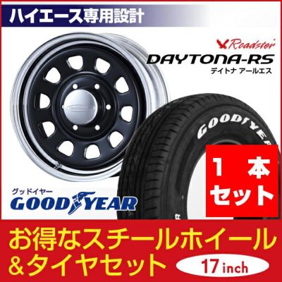 Daytona-RS 17インチ×6.5J+38 6穴 クロームリム ブラックディスク+Good Year ナスカー PLUS 215/60R17C 109/107R ホワイトレターのレビューを書く