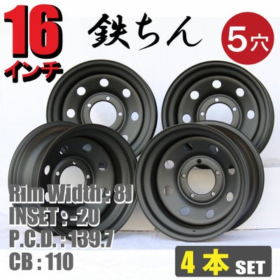 てっちん(鉄ちん) 16インチ×8J -20 5穴 PCD139.7 CB110 マットブラック4本セットのレビューを書く